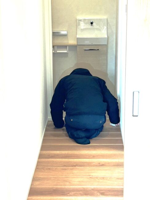 こちらでは現場監督の土井が建具レールの拭き掃除をしてくれています。