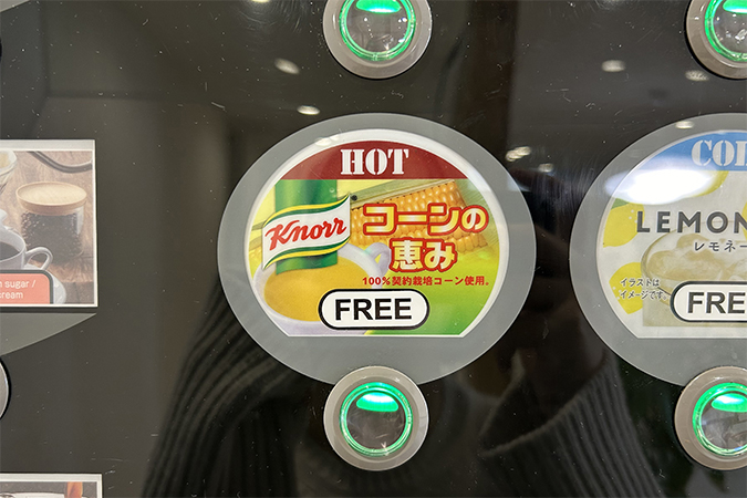自動販売機がございますので、ご自由に好きなお飲み物をお選びください