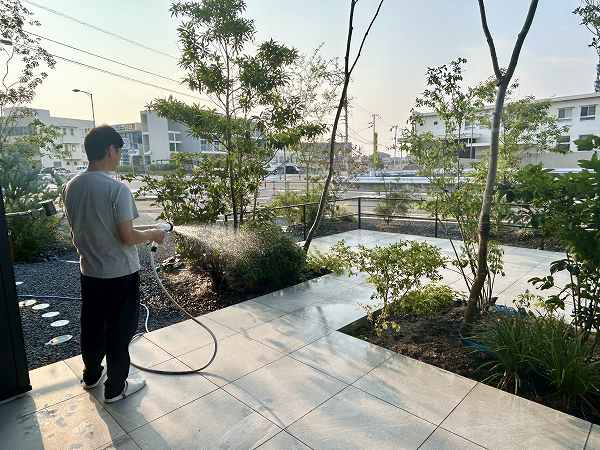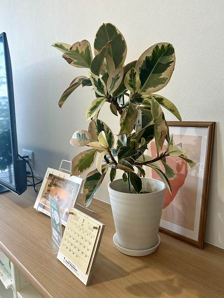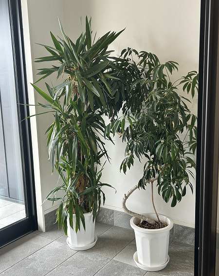 玄関に置いてある4つの観葉植物たちがお出迎えしてくれます。