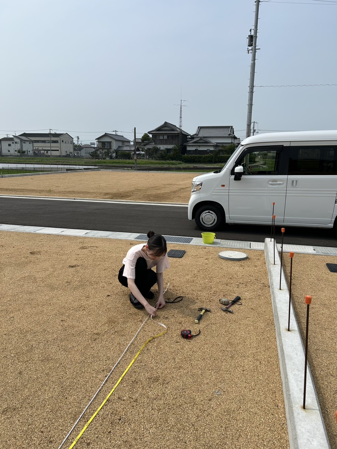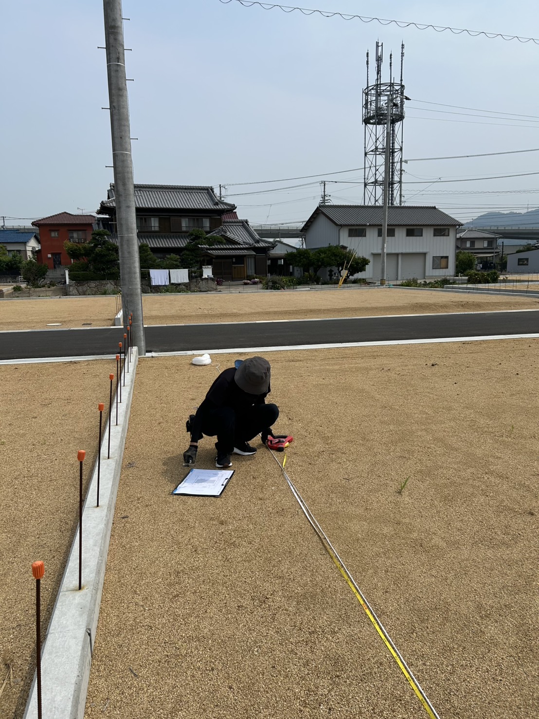 縄を張るとお家の配置やサイズ感などイメージができるので、着工前には必ず張らせていただいてます。