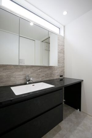 洗面室は面積が少ないためアクセントに挑戦しやすい場所です。
