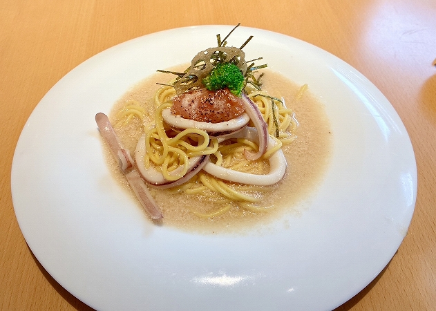 悩んだ末にたらこパスタ(大葉抜き)を頼みました。