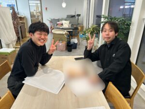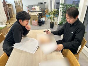 設計 南原とコーディネーターの山地が打合せをしていました。