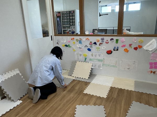 掃除のためにキッズルームに敷いてあるマットをいったん分解して、
