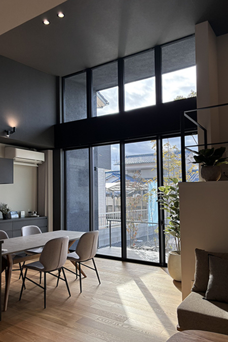天井まで続く高さのある窓からは、室内にやわらかな光がたっぷりと入ります。