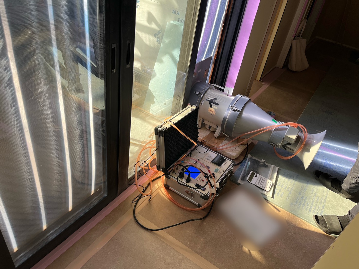 気密測定とは住宅全体の隙間の面積を測ることです。