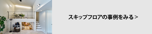 スキップフロアは平面だけでは実現できない、空間の重層的な使い方ができます。例えば、スキップフロアの下部を出入りできるようにすることで、キッズスペースや収納として使用することができます。