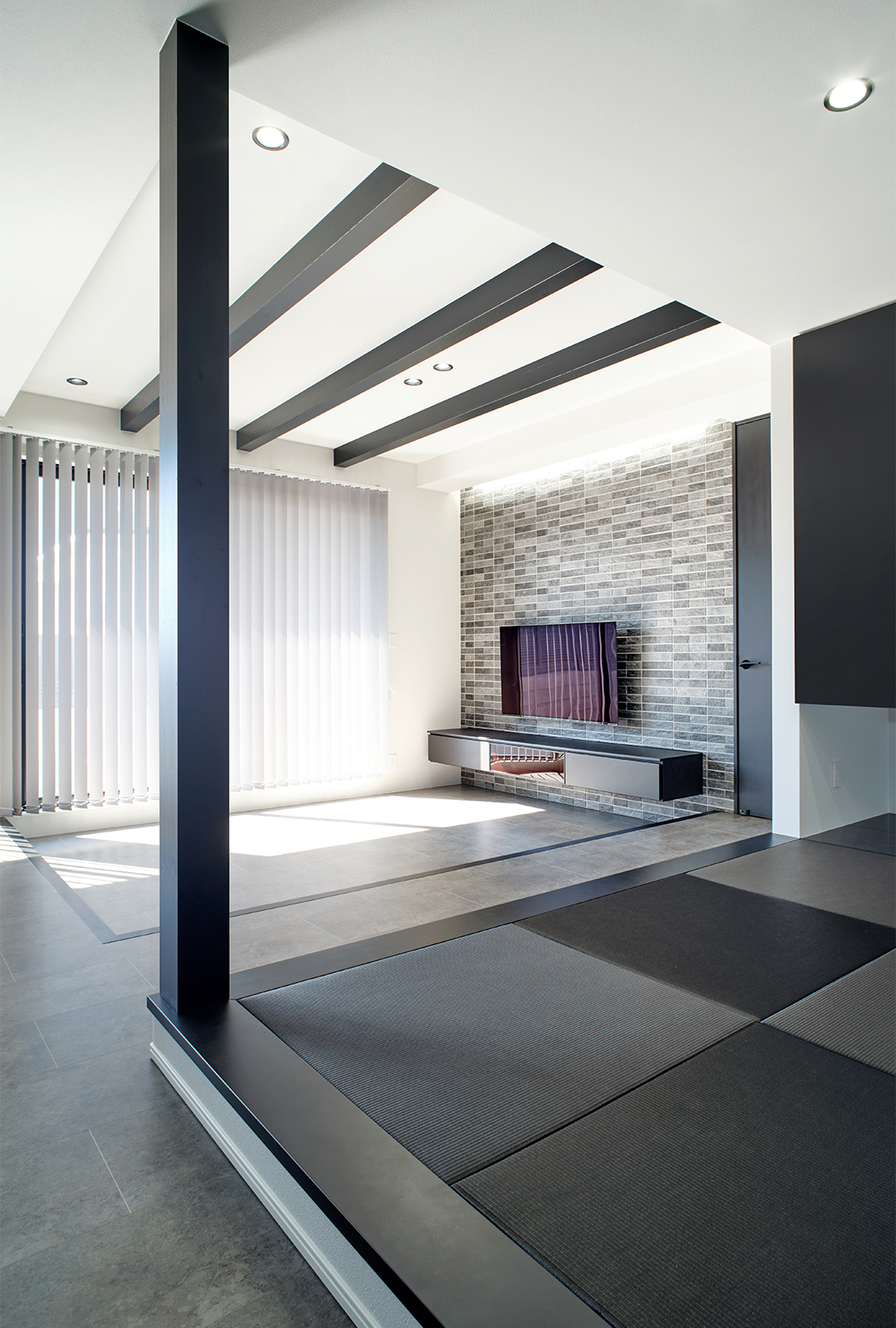 M様がこだわったのは、モノトーンで生活感の出ないホテルライクな雰囲気。特に「モノトーンの空間」にこだわり、床材やクロス、和室の畳もモノトーンで統一したスタイリッシュなお家に仕上げました。