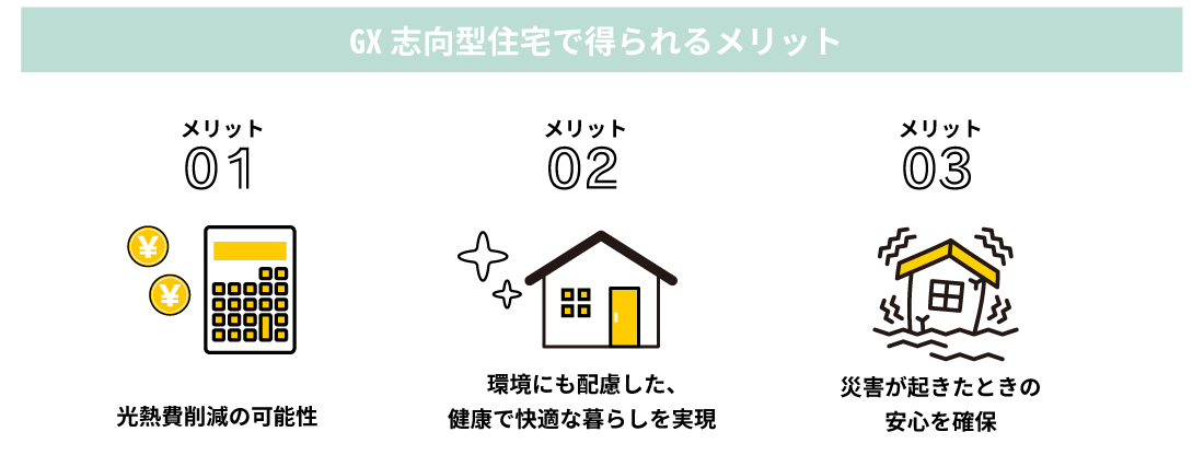 GX志向型住宅=環境に優しく、性能もいいことがおわかりいただけたと思います。では実際にGX志向型住宅に暮らす際にどのようなメリットがあるかご紹介します。