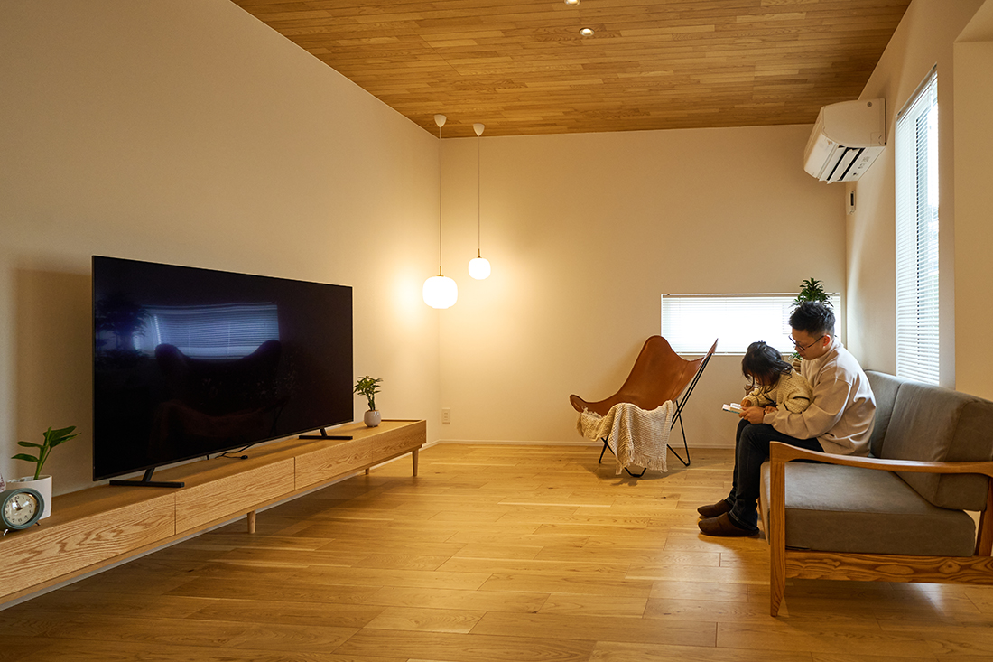 疲れずにTVを見るためには、一般的に画面の高さの3倍程度の距離が最適といわれています。そこで、TVの大きさや家族との日頃の過ごし方を考慮した空間づくりを心がけましょう。TVをあまり見ず、窓の外の風景を大切にしたい場合は、窓を背景にTVを設置するのがおすすめです。TVや映画を頻繁に見る場合は、窓と反対側の壁にTVを設置するのが良いでしょう。