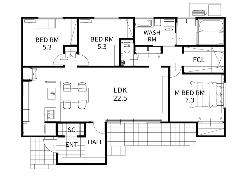 樹脂サッシ トリプルガラス(日射遮蔽タイプ)※LDK南掃き出し窓のみハイブリッドスライディングを使用