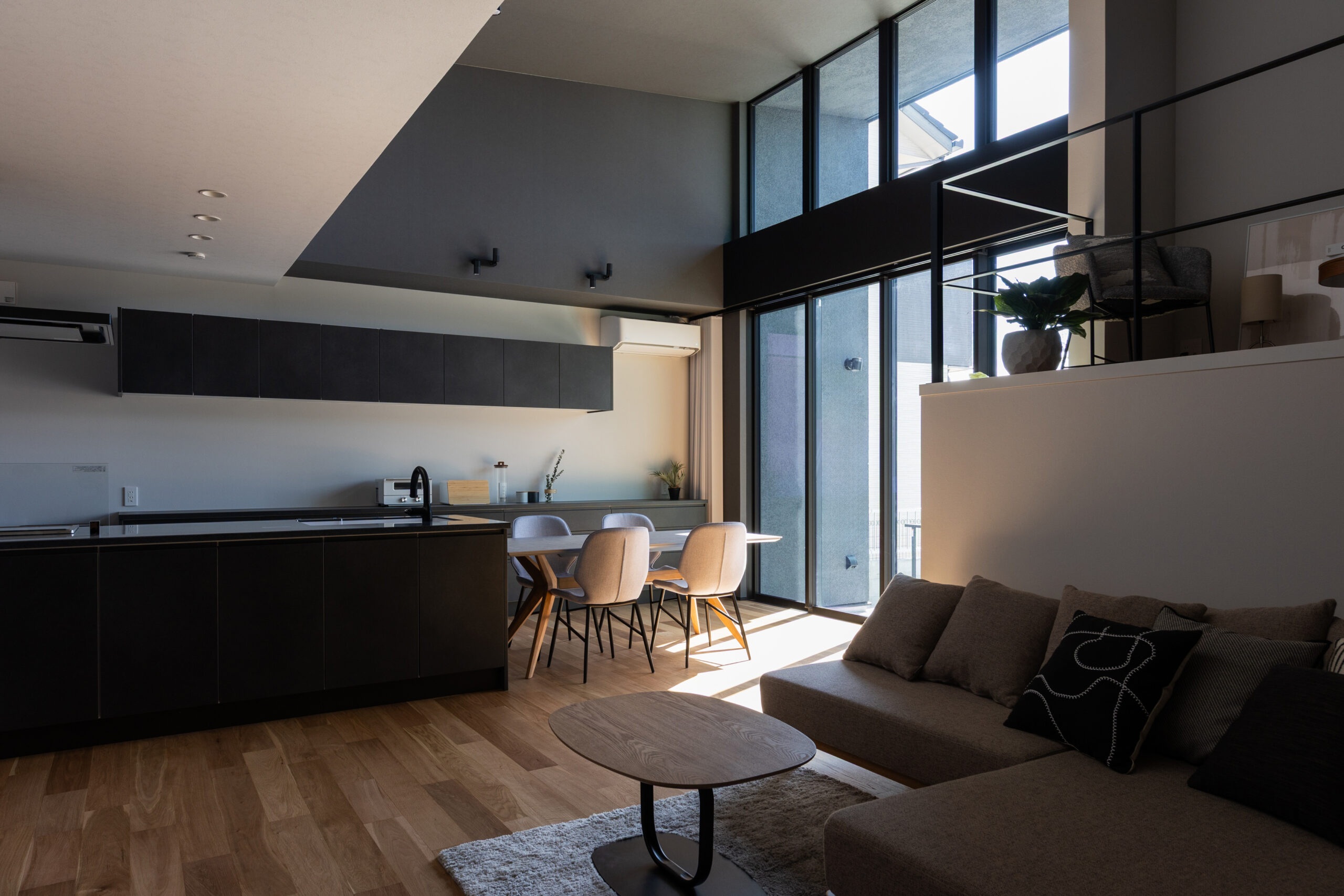 スキップフロアや異なる天井高により立体的なデザインが施されています。