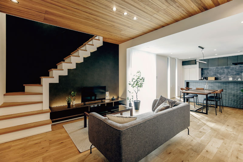 洗練されたクールモダンな雰囲気で住む人を迎える家。