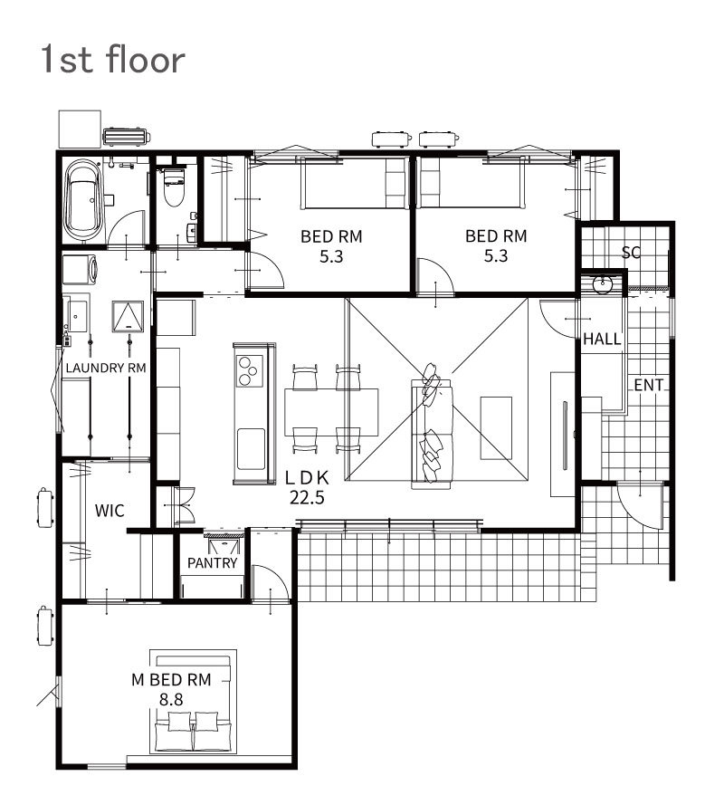 落ち着いた雰囲気で、大人モダンな印象の平屋。