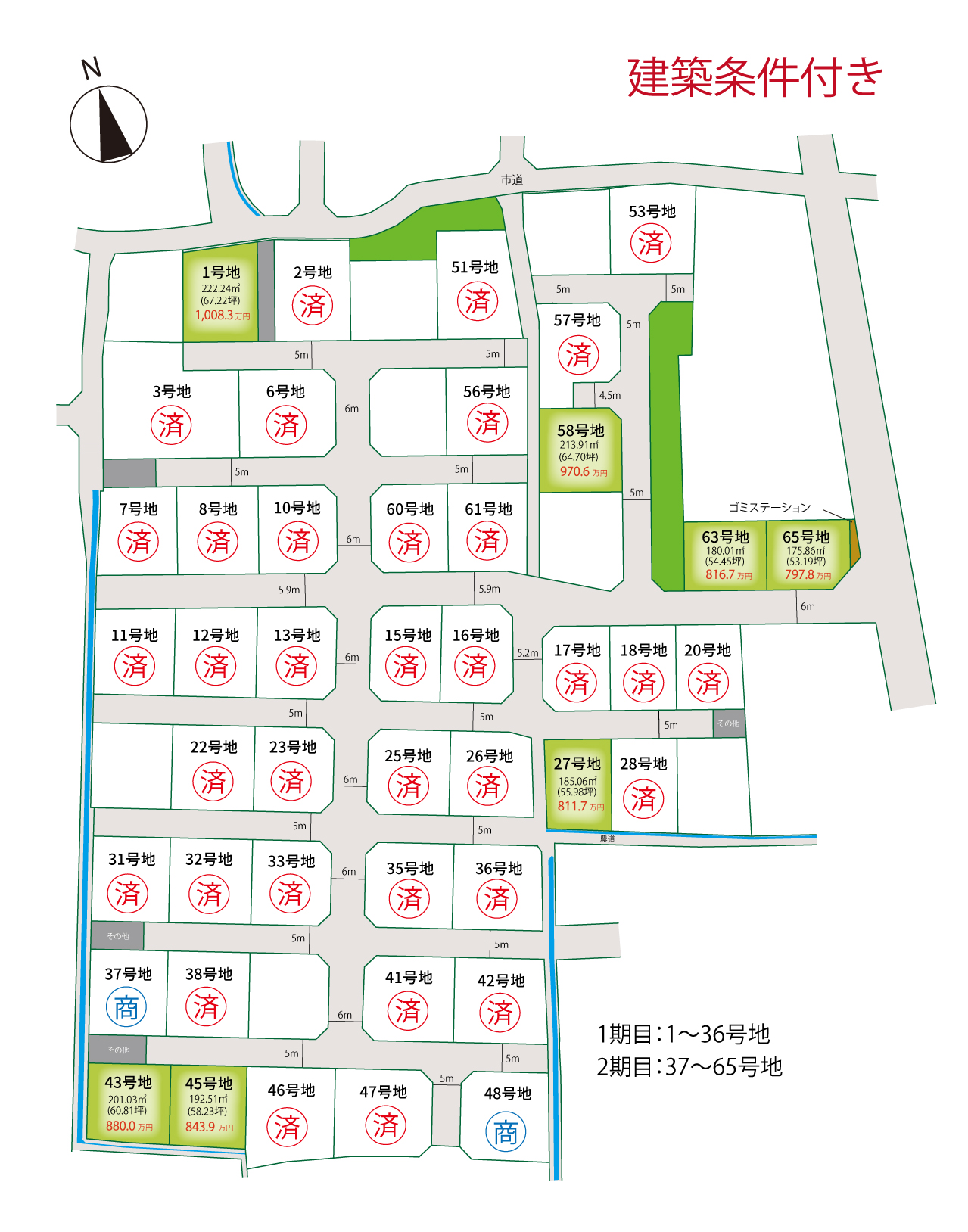 1期目 第R3-89号 令和3年12月13日 2期目南側 ( 37~48号地 ) 第R5-26号 令和5年6月21日 2期目北側 ( 50~62号地 ) 第R5-27号 令和5年6月21日 2期目北側 ( 63・65号地 ) なし