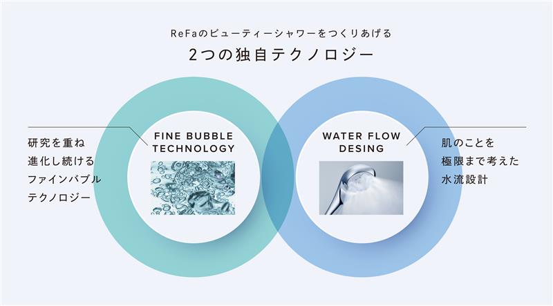 やさしく汚れを落とすテクノロジー「ファインバブル」と、ReFa独自の水流設計。