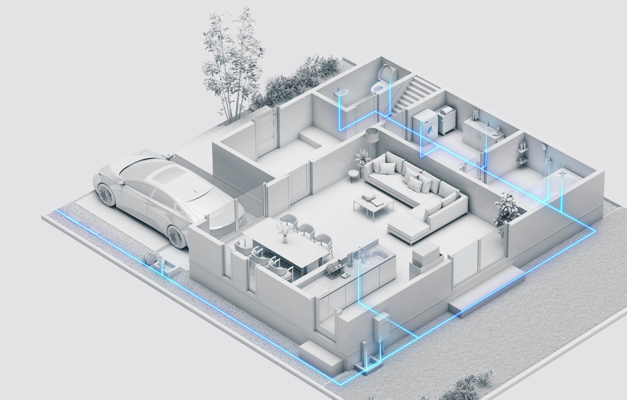住居の水道管に取り付けるだけで、家中にウルトラファインバブルを行き渡らせることができます。