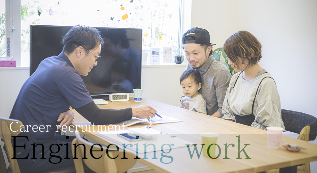お客様との打合せで作成された図面を確認し、お客様の希望や設計の見せ場など、図面に込められた思いを形にできるかを確認します。 上棟後は、水道工事、電気工事など約15社の業者さんとともに、完成に向けて作業をし、一部資材の手配、打ち合わせ等、施工に関する作業を適正に行えるよう検査や工事の立会い品質、安全管理・竣工時の引渡し等施工管理全般に関する業務を行います。