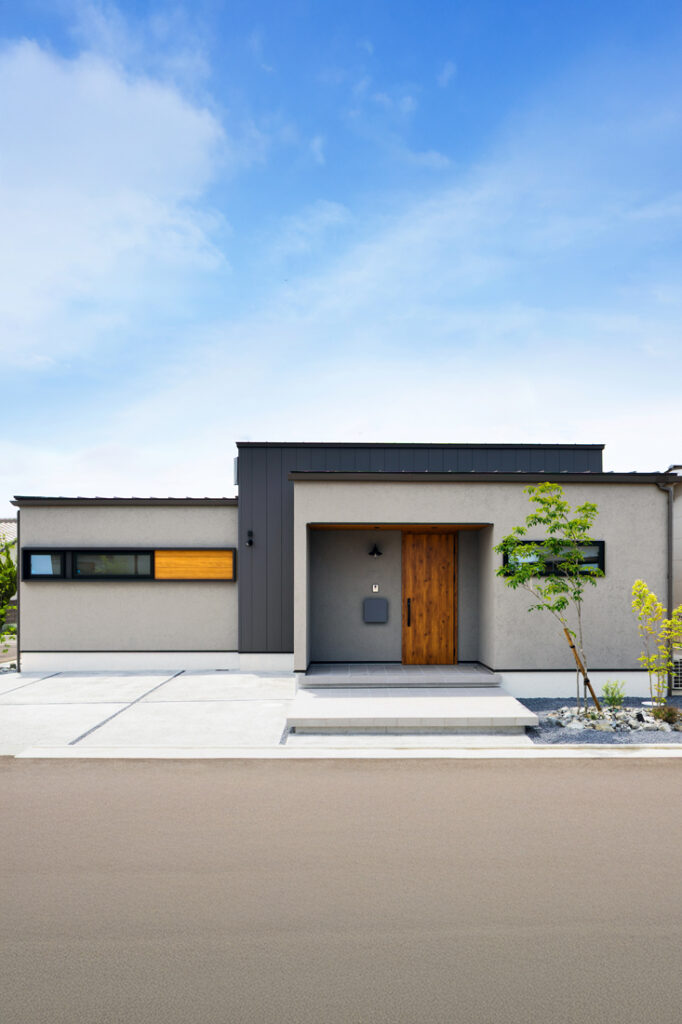 ブラック、ホワイトの吹付塗装は、カッコ良さもありながら質感の美しさが際立ちます。レッドシダーで自然の木目が持つ温かさもプラスしました。