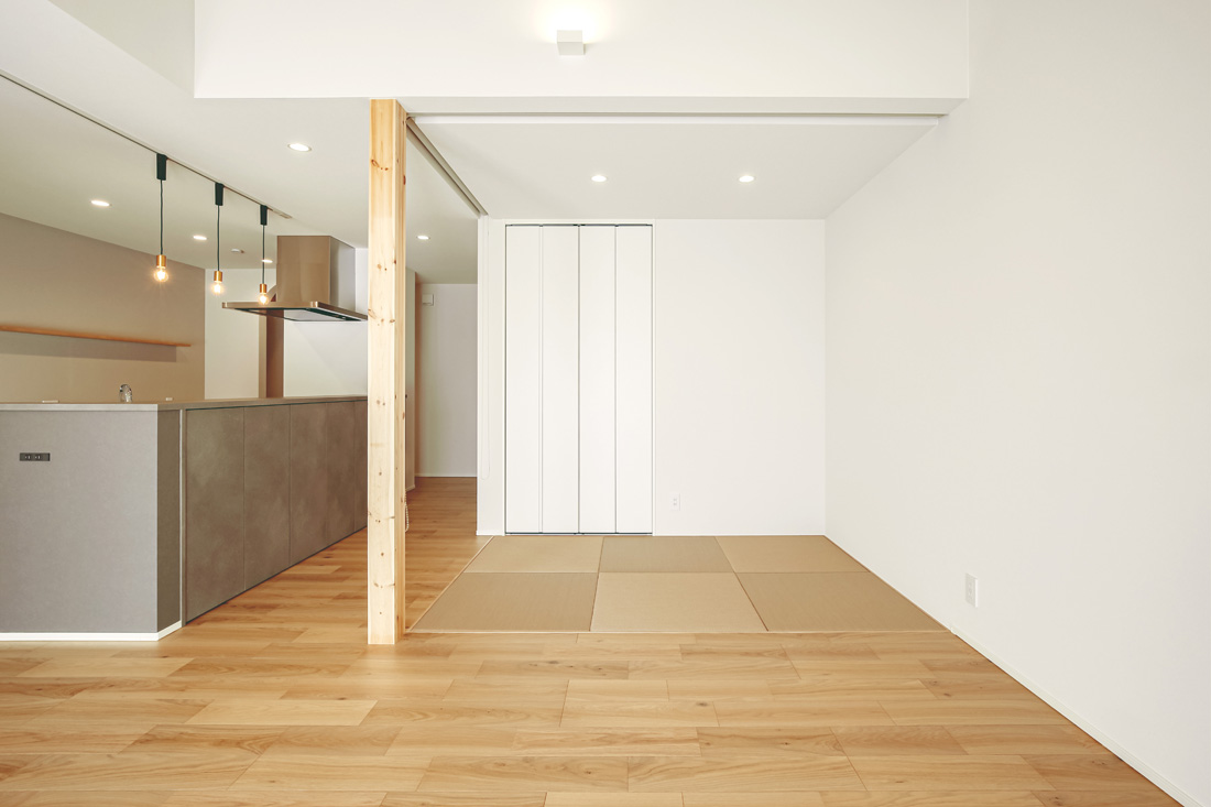 ロールスクリーンで仕切ることもできる畳コーナー。収納も備えているので、お子様用のコーナーや家事スペースなどにも活用できる便利な場所です。