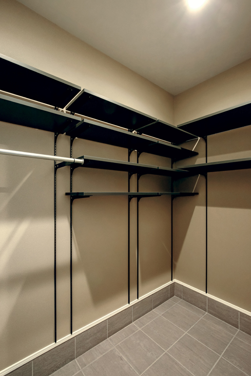 玄関ホールをすっきりさせられるように、土間収納を別で設けています。大きめの物もしっかり収納できるスペースに加え、可動棚で整理整頓もばっちりです。