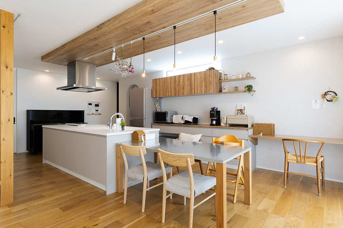 造作カウンターは、空間に調和するデザインと機能性を兼ね備えています。書斎では作業スペースとして、洗面所では洗面台としてタオルを置いたり朝の身支度に役立てたり、寝室やトイレでは小物を置いたりと暮らしに彩りを添えます。 また、キッチン裏など様々な場所で採用され、用途に合わせて素材や厚み、撥水性、耐久性などを考慮した最適な素材を採用しています。 モニター上でカウンターの色味や厚さ、高さを確認し、質感や色味はサンプルを見て決めることができます。機能美を考えて採用した造作カウンターは、日々の暮らしをより豊かにし、居心地の良い空間を作り出します。